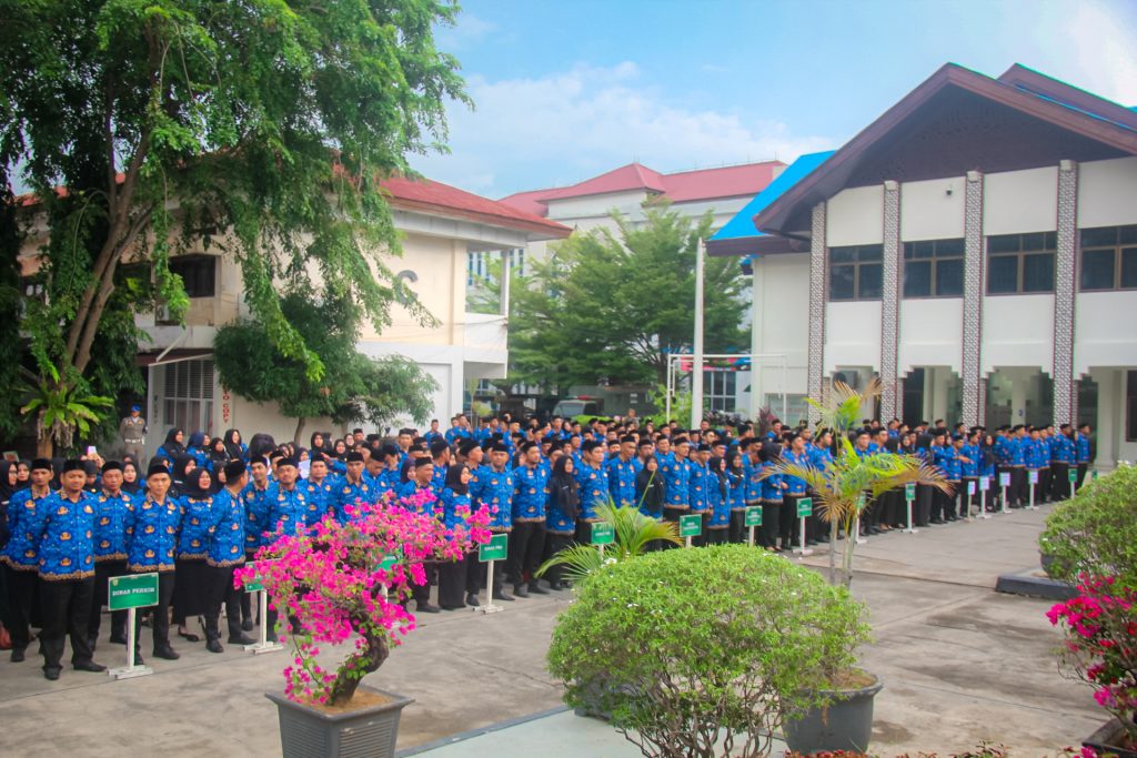 Acara penyerahan SK digelar di halaman Balai Kota Banda Aceh, Rabu (15/10/2025). Meski sempat turun gerimis, suasana tetap khidmat dan penuh semangat. Ribuan peserta berseragam Korpri tampak antusias mengikuti jalannya prosesi.