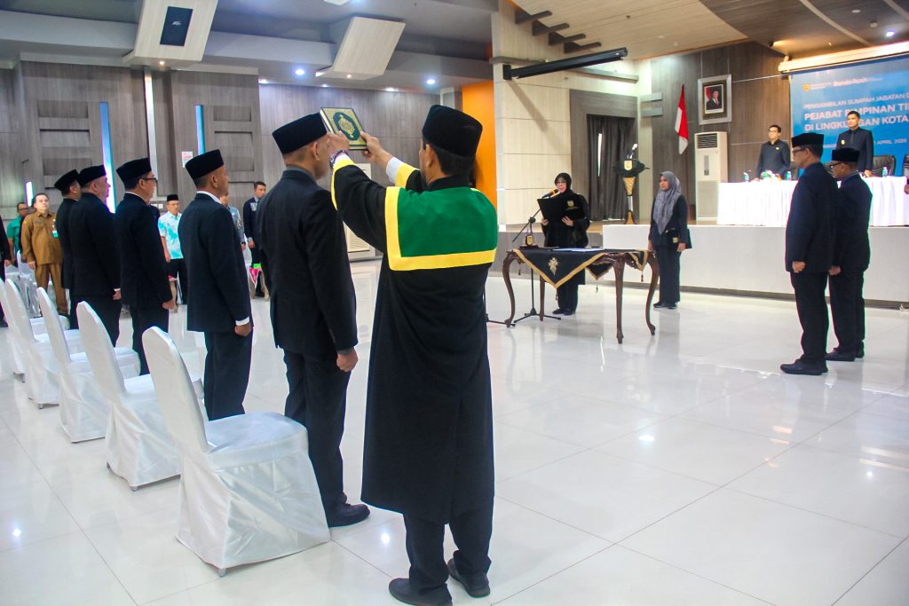 Wali Kota Banda Aceh Illiza Sa’aduddin Djamal resmi melantik lima Pejabat Pimpinan Tinggi Pratama di Lingkungan Pemko Banda Aceh, Senin (20/4/2026) di Aula lantai 4 Mawardy Nurdin.